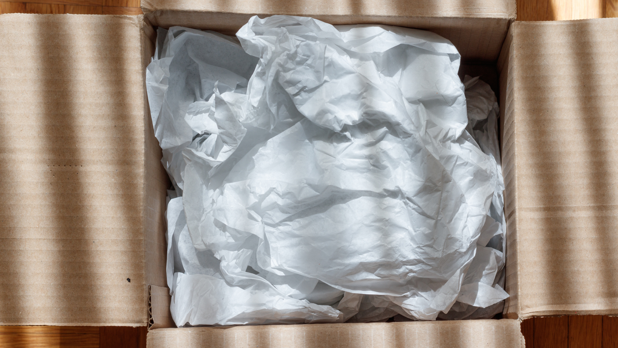 1. Börja med att knyckla ihop lite silkespapper som du placerar i botten av flyttkartongen som stoppning.